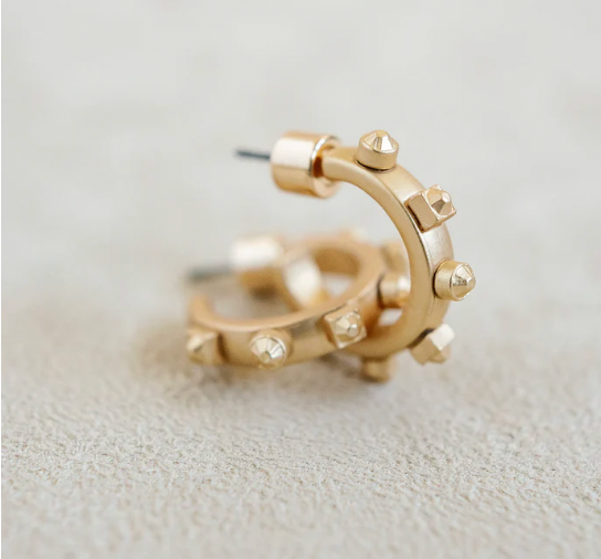 Metal 1/2 inch (.5") gold huggie hoop with silver stones. This lightweight hoop is nickel free, lead free.